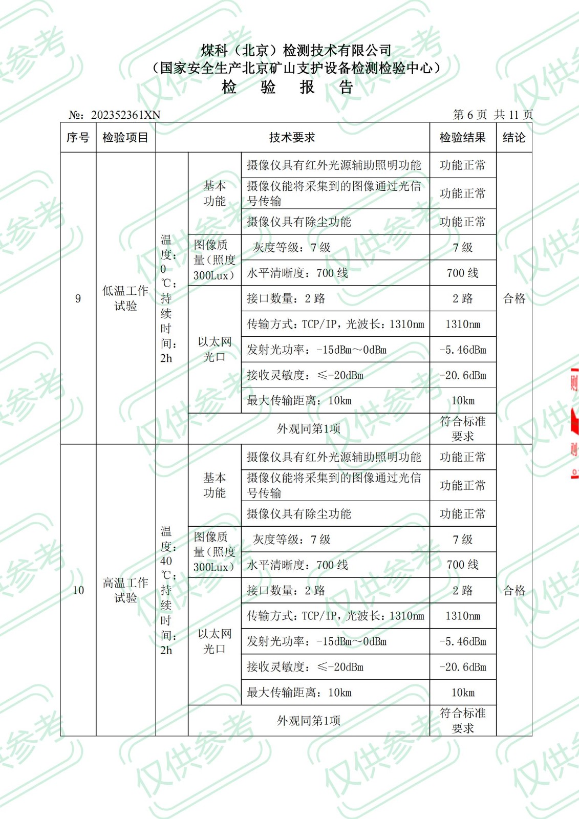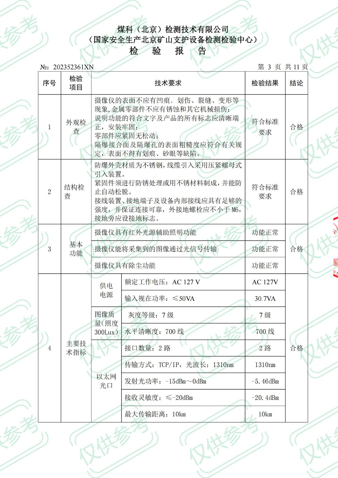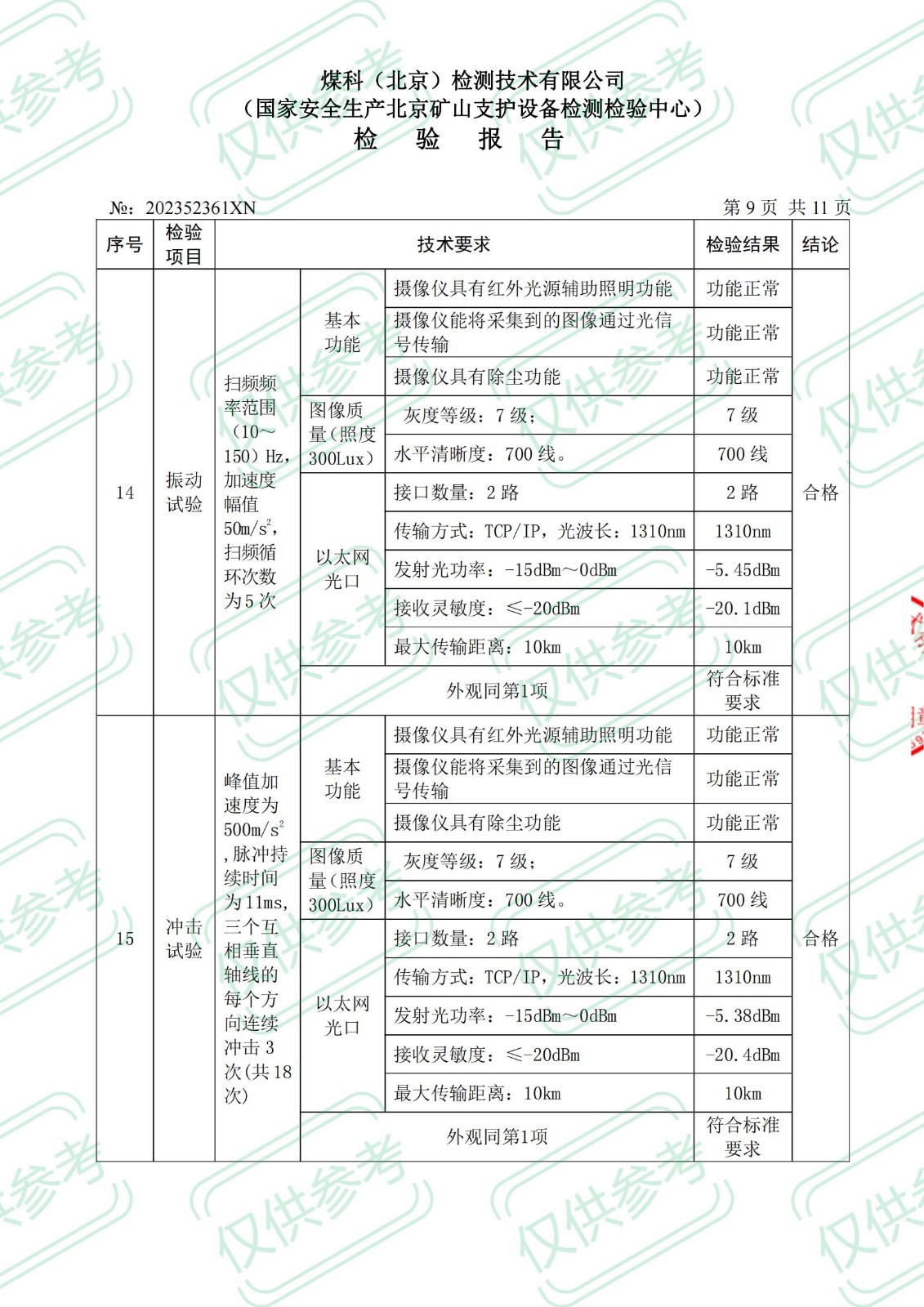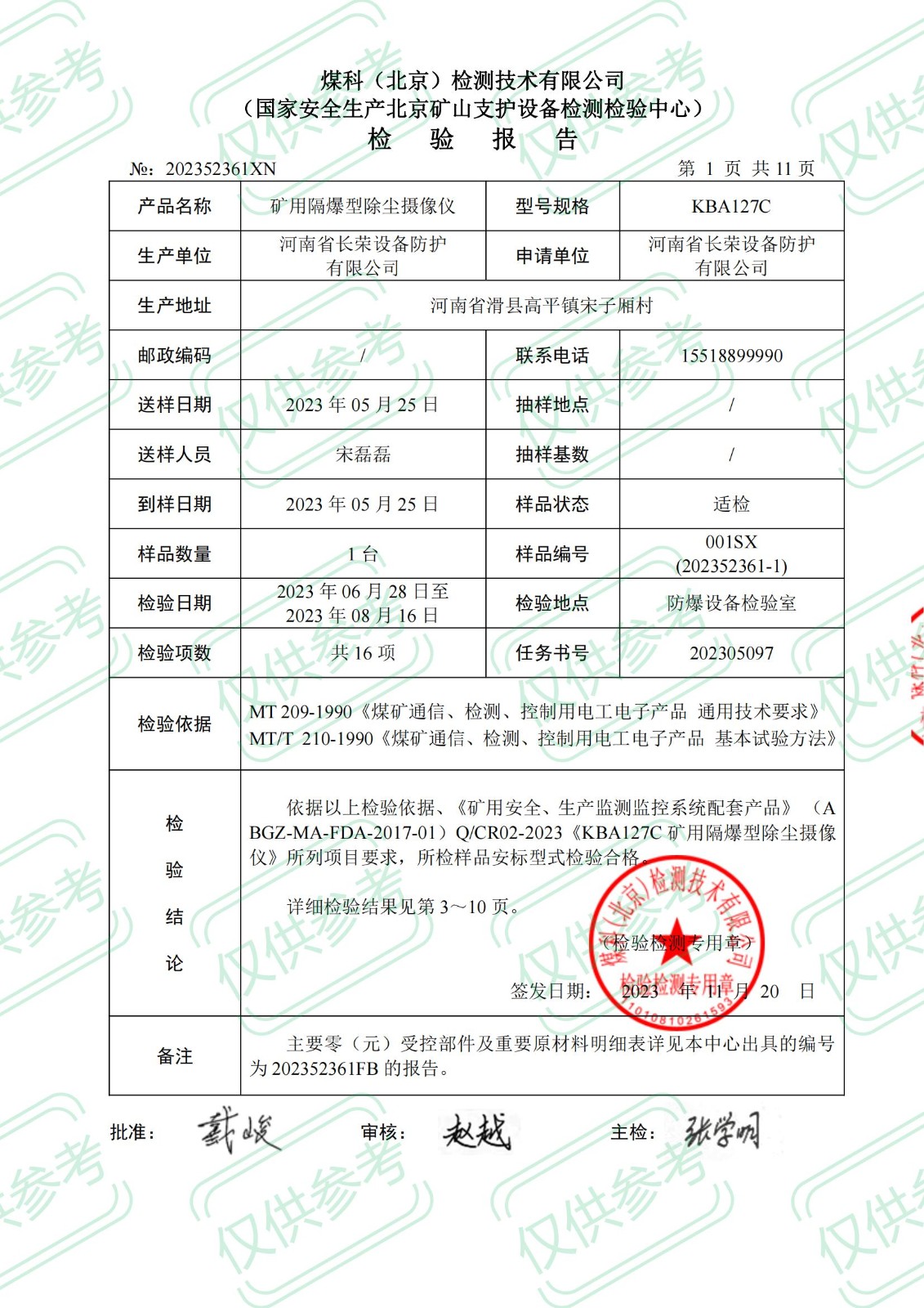 礦用本安型攝像儀檢 驗(yàn) 報(bào) 告KBA12